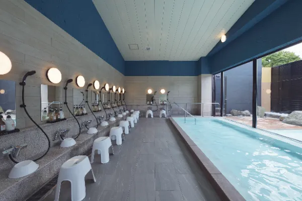 富士の山麓から湧き出る清冽な天然水を使用。広々とした浴場では、ゆったりと手足を伸ばしてご入浴いただけます。